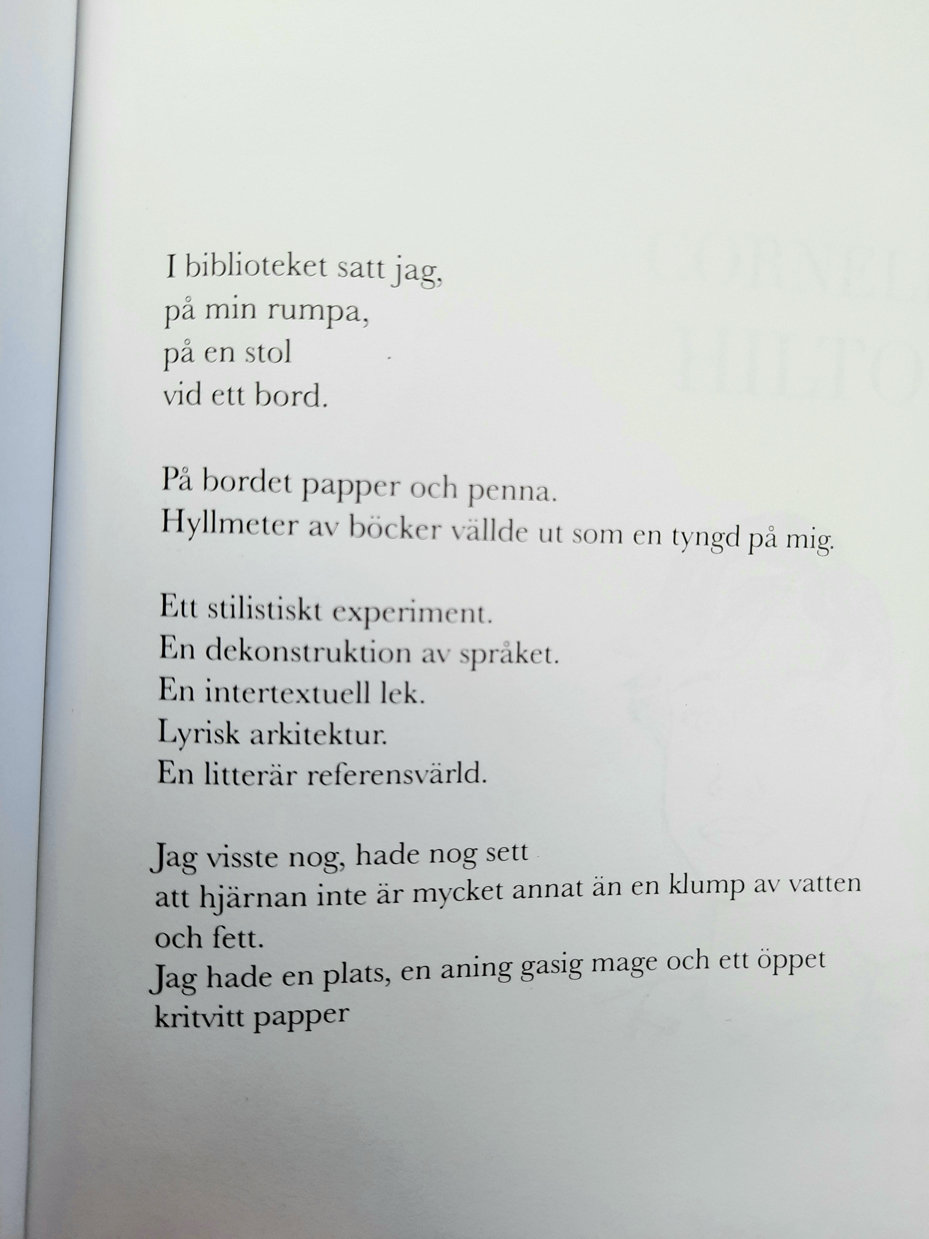 Wik var så häftigt. Det var min experimentverkstad. Varje måndag skrev vi ut våra nytillverkade texter och stoppade ned i varandras inlämningsmappar. Där fick man lägga ned (nästan) precis vad som helst och se vad som hände. Det fick vara fem långa sidor prosa eller två minimalistiska diktrader. Dramatik eller essä eller kanske ett brev. Något färdigt eller ett slarvigt påbörjat utkast. Något seriöst eller något helt knäppt. Något anspråksfullt och högtravande eller något lågt och oanständigt. Något i jag-form eller med ett du-tilltal, i nutid eller dåtid, något sant eller påhittat… Det kunde vara skrivet i Times New Roman med enkelt radavstånd eller så kunde det vara en text som gått loss och testat alla möjliga slags icke-verbala uttryck som kan förmedlas genom verktygslådan i Microsoft Word.